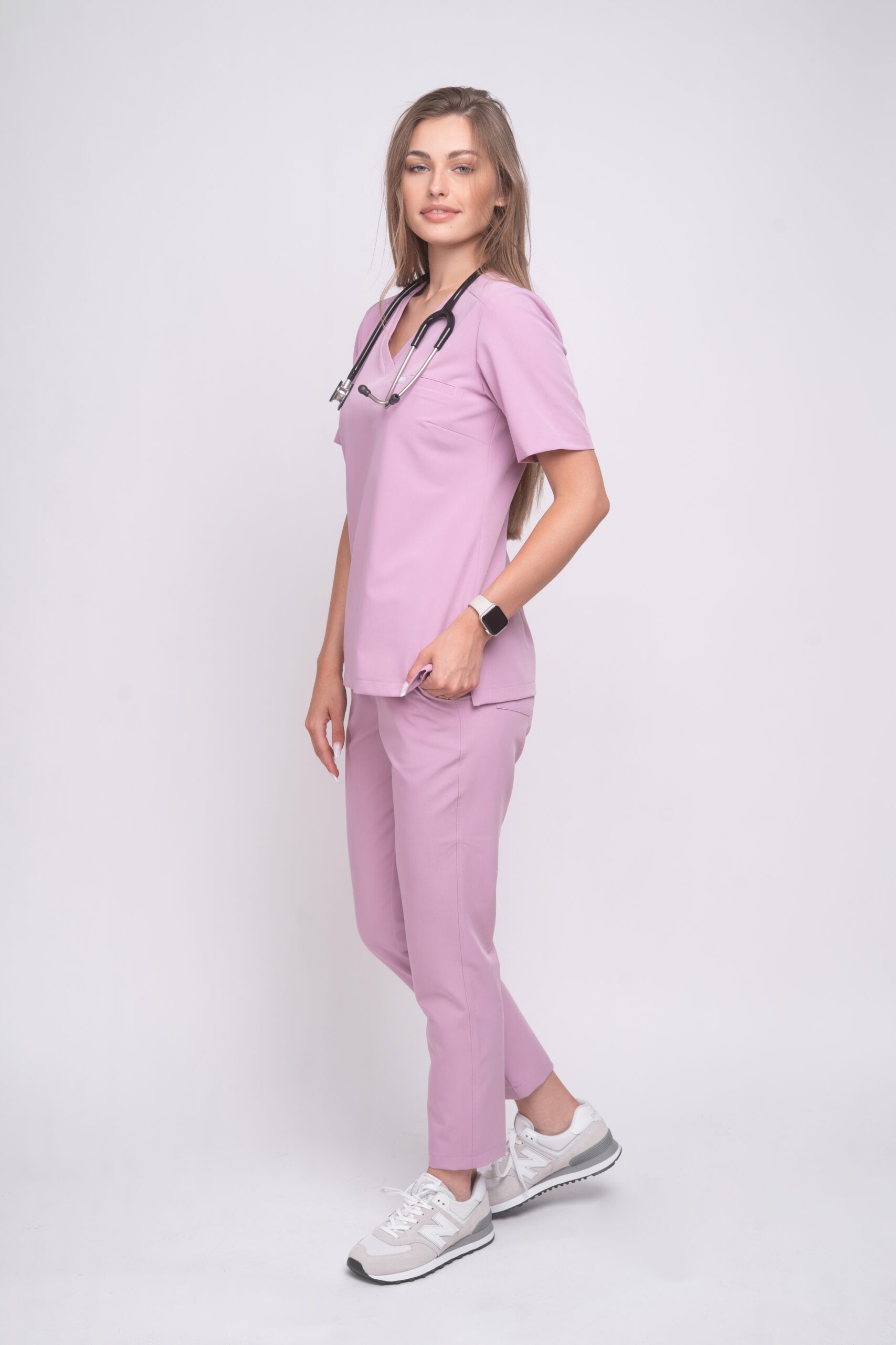 Spodnie medyczne damskie SLIM FIT z kolekcji Basic w odcieniu Lilia Bloom to doskonałe połączenie funkcjonalności i kobiecego stylu. Ich dopasowany krój podkreśla sylwetkę, zapewniając jednocześnie swobodę ruchu podczas intensywnej pracy. Elastyczny pas gwarantuje wygodne dopasowanie, a minimalistyczny design sprawia, że spodnie prezentują się profesjonalnie i nowocześnie. Model posiada praktyczne kieszenie – dwie boczne i dwie tylne – które umożliwiają przechowywanie niezbędnych drobiazgów. Delikatny, liliowy kolor dodaje świeżości i subtelnej elegancji. Wysokiej jakości materiał jest miękki, przewiewny i odporny na zagniecenia, co sprawia, że spodnie idealnie sprawdzą się w codziennej pracy w służbie zdrowia. To niezawodny wybór dla każdej profesjonalistki, która ceni sobie wygodę, styl i funkcjonalność.