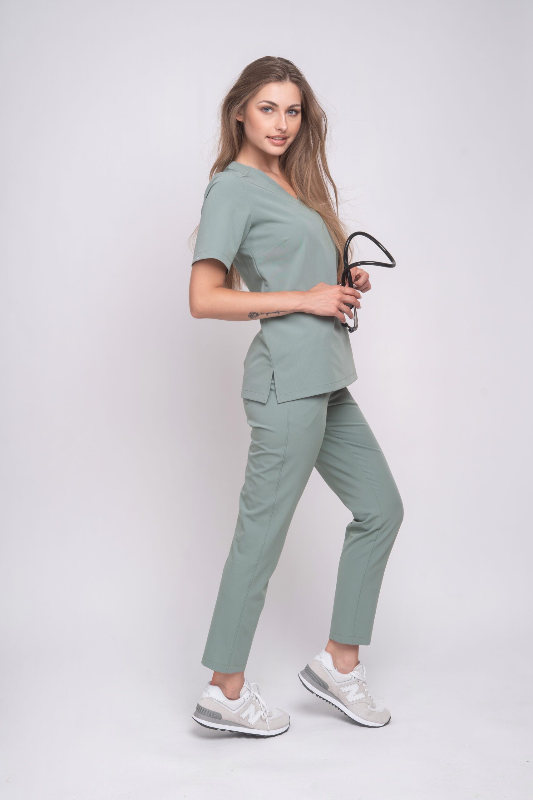 Spodnie Medyczne Damskie BASIC SLIM FIT – MATCHA MIST